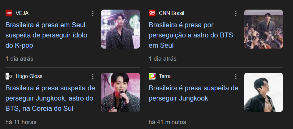 A alecrim dourada além de já ter sido presa anteriormente pelo mesmo motivo, já possui ordem de restrição e não tem permissão de chegar perto dele. Ao todo se não me falha a memória, o Jungkook já acumula 3 processos contra ela.