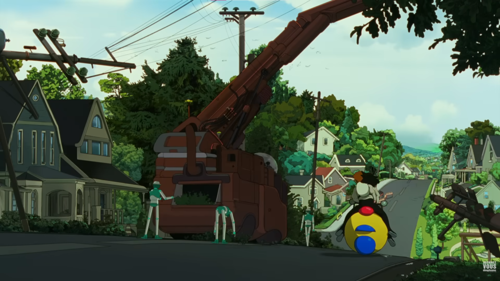 Isso é chover no molhado, mas é necessário ressaltar o quanto essa animação é linda! A amizade de Arco e Íris tem todo aquele carinho e momentos inocentes e de determinação. Como quando ele ensina língua dos pássaros para ela. Ou quando ela improvisa a chuva que ele precisa pra voar com as mangueiras do quintal. Também existe toda uma sensibilidade contemplativa que me lembrou muito uma vibe Ghibli.