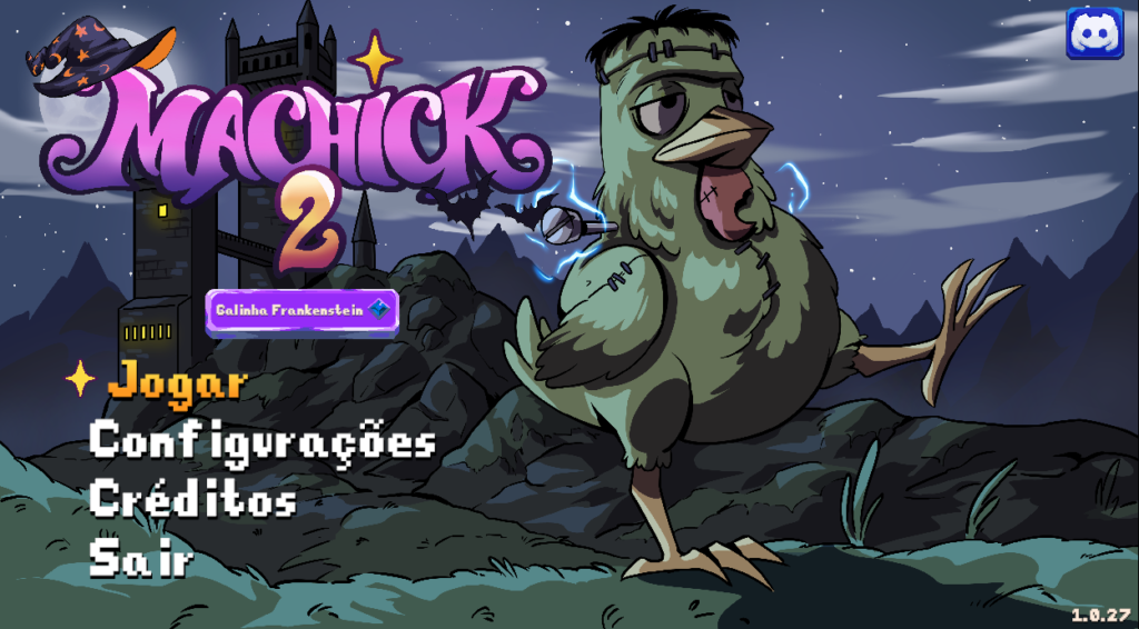 Porém, o jogo também recebe atualizações sazonais. No momento, a queridinha da vez é a de Galinhoween, lançada em 24 de outubro de 2025. O nome já é ótimo por si só, mas outros elementos dão uma incrementada na jogatina. Você ganha uma skin de Frankenstein (seria incrível se ele se chamasse Frangostein) que pode ou não ser ativada em cima da galinha que você já joga. Além disso, tanto o restante das telas estão lindíssimos com decorações de abóboras e fantasmas. Até os nossos inimigos sapos ganharam chapéuzinhos de bruxa e outras fantasias que eu achei muito fofo.